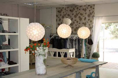 החנות קטנה יחסית, אך מסודרת באופן קל להתמצאות עם סטנדים של פריטי לבוש לנשים ולילדות עד גיל 14, לצד מדפים בתוכם מקופלים פריטים נוספים. במרכז החנות ניצב שולחן עץ, לבן אף הוא, עליו ניתן למצוא אביזרי אופנה שונים.