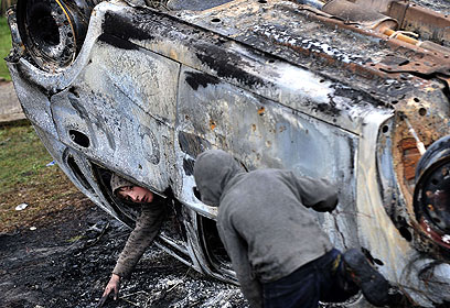 ניידת משטרה שרופה בבירה (צילום: AFP)