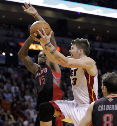במיאמי, לא התרגשו מהיעדרם של דוויין ווייד וכריס בוש, כשלצד לברון ג'יימס הגיע הפעם לשחק מייק מילר, שהוביל את ההיט לניצחון על טורונטו ראפטורס.