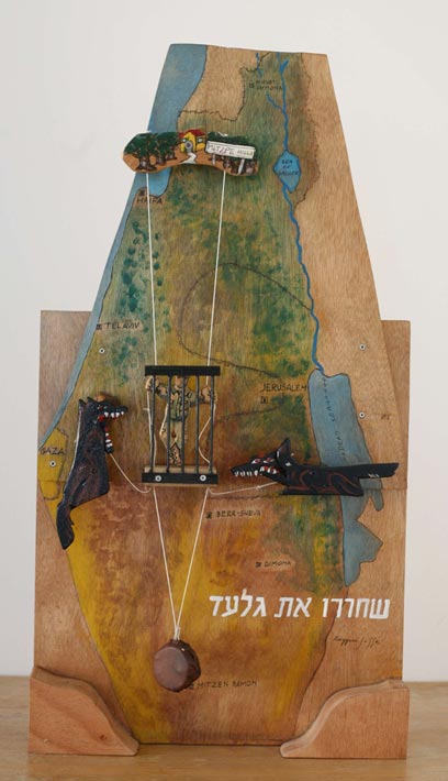 גלעד שליט חסום בפינת לוח השחמט. עבודה של ליפקין