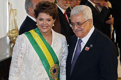 תמיכת ברזיל תגרום ל"אפקט דומינו"? אבו מאזן ודילמה רוסף (צילום: AFP)