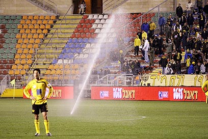 עידן טל והממטרה באצטדיון טדי. מה יהיה באפריל? (צילום: דודי ועקנין)
