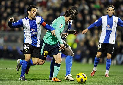 מסי מול הרקולס. הצמד שלו סגר עניין בסיום (צילום: AFP)