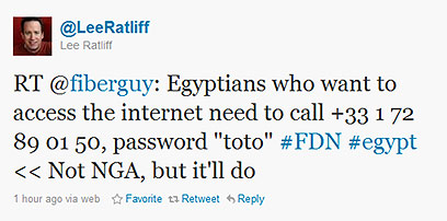לאחר שמצרים חסמה את האינטרנט הציעה ספקית אינטרנט אמריקנית למצרים להתחבר לרשת דרכה בחיוג טלפוני. לשם כך, הם צריכים לפשפש ולמצוא מודם 56K ולחייג שיחת חוץ.