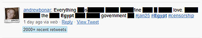 סימני המחיקה השחורים הם מחאה נגד הצנזורה של המשטר המצרי בטוויטר.
