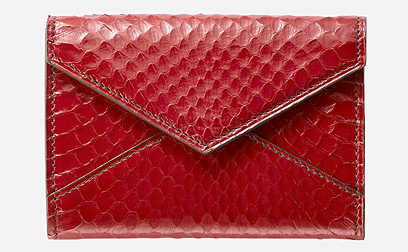 ארנק של קרטייה: הארנק עשוי מעור נחש, צבעו אדום והוא מעוצב בצורת מעטפה.