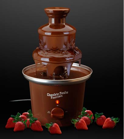 מפל שוקולד: ממיסים שוקולד, מוסיפים טעמים - וטובלים פירות, עוגיות, אגוזים, תותים או מרשמלו במפל המתוק.