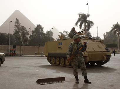 לא לוקחים סיכון. כוחות צבא מאבטחים את הפירמידות בגיזה (צילום: AP)