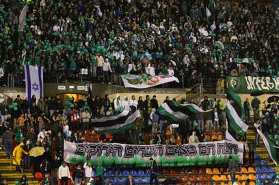 אוהדי חיפה בטדי. הגיעו במזג אוויר סוער במיוחד (צילום: אלי אלגרט)