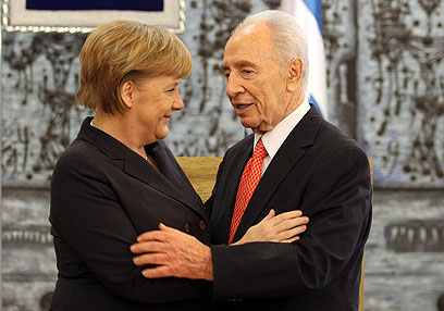 חיבוק לבבי - ואזהרה. פרס ומרקל (צילום: גיל יוחנן)