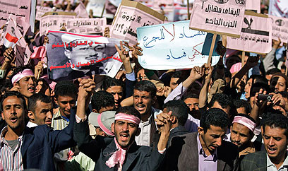 חסמו את הרחובות וקראו לנשיא לפרוש. מפגינים בצנעא (צילום: AP)