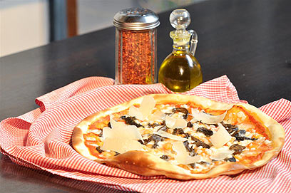 - בשלב זה ניתן להוסיף כל העולה על הדעת כתוספות: זיתים מגולענים, פרוסות עגבנייה, פפרוני, פטריות, תירס וכל מה שאוהבים. ניתן להחליף חלק מהגבינה בגבינה אחרת בשביל הטעם כמו: גבינת ברי, קממבר וכו'.
