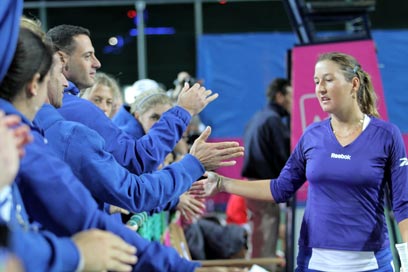 "אני נורא נרגשת, זו הרגשה מעולה לנצח משחק ראשון בפדרציה, אבל זו רק ההתחלה, יש עוד הרבה עבודה השבוע", אמרה המחבט מספר 2 של ישראל, אחרי ה-1:6, 7:5, 0:6 על אן קרמר האורחת, במפגש בין מספרי 2 של שתי הנבחרות.