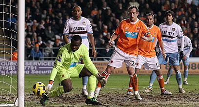 ריצ'ארד קינגסון שומט פנימה את הכדור שבעט אובינה (גטי אימג'ס)