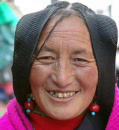 טיבטית ששערה ארוג בשתי וערב, במסלול עולי הרגל. להסה, טיבט