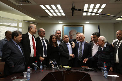 סיעת העבודה עם היו"ר חריש (צילום: אוהד צויגנברג)