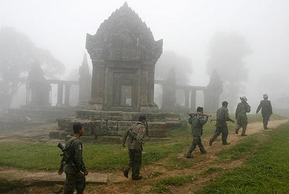 חיילים ליד מקדש פראה ויהיר. סכסוך על עוד אתרים בגבול (צילום: AP)