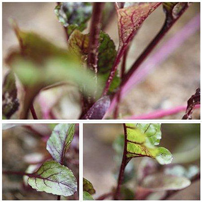 - חוצים את הסלקים הצלויים וחותכים כל חצי לפלחים. מפזרים את פלחי הסלק בין עלי האנדיב בלי לערבב.