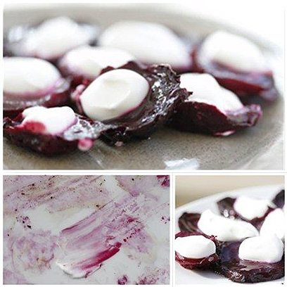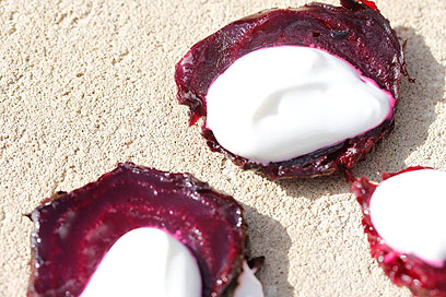 - עם מעט שמנת חמוצה ליד או מעל פרוסות הסלק. קומבינציה של צבע, טעם וטקסטורה שאי אפשר לסרב לה. המפגש בין ריכוז המתיקות-מליחות של הסלק לבין הרעננות הקרירה של השמנת, בין הלבן הצח לאדום העמוק, הוא הבטחה לחתונה שתרצו לממש שוב ושוב.