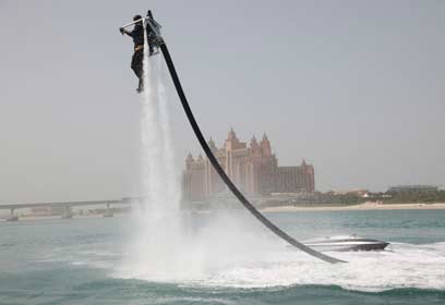 סוף סוף בשורת הג'טפק הגיעה. אמנם לא ככלי תחבורה, ואמנם אפשר להשתמש בו רק מעל מים, ואמנם אפשר להגיע איתו רק עד לגובה של 10 מטרים, אבל זה עדיין נראה כיף. חברת Jetlev-Flyer הגרמנית הוציאה ג'טפק לשימוש פנאי המונע בעזרת מים. הג'טפק מחובר בצינור עבה לסירה קטנה שעוקבת אחרי התעופה של הטייס ומספקת לו את לחץ המים הדרוש כדי לשמור אותו באוויר. הצינור גם משמש כעוגן בטיחות לטייס כדי שלא יעוף גבוה מדי ויאבד יציבות. כדי להשתמש בג'טפק תצטרכו לעבור סדרה קצרה של הדרכות, אבל אנחנו מעריכים שגם להתאמן עם הג'טפק זה כיף.