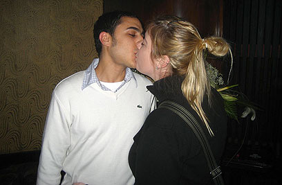 כל הנוכחים במזרקה החלו למחוא כפיים. אור ומיכל (צילום: מיטל בן-נון)