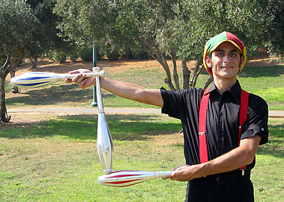 "אני עושה ג'אגלינג עם כדורים, הולך על קביים, יש לי הופעות אש והופעות אור".