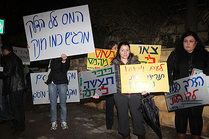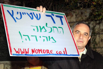 שליחות עד הבית. ההפגנה מול דלתו של שטייניץ (צילום: גיל יוחנן)