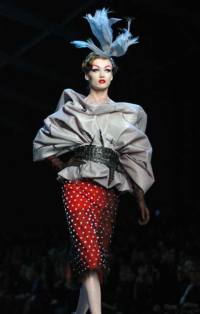 הצלליות של השמלות הזכירו לי את העיצובים המודרניסטיים של קוראז' ופייר קארדן משנות השישים ואילו כובעי המתכת העגולים והמוזרים שעוצבו על ידי הכובען פיליפ טרייסי, הזכירו לי את הדגמים שעיצב לפני מספר עונות לז'יבאנשי הוט קוטור.