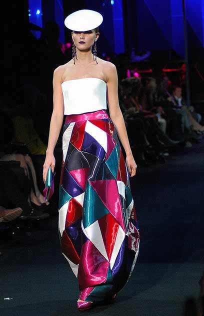 בדים בוהקים נראו גם בתצוגתו של סטפן רולאן, מעצב צרפתי שמעצב רק קו אופנת עילית. לרולאן יש עשרות לקוחות נאמנים בזכות מחיריו הסבירים ודגמיו האלגנטיים. הפעם הוא עיטר את השמלות במשחקי קיפולים ובעודף בד. התוצאה שובת לב.