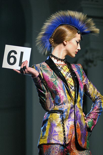 שמות הדגמים ניתנו בהתאמה לנושא התצוגה: "פאנק אנד פרנץ' קאן-קאן קוטור" (Punk & French Can-Can Couture). האייטיז באו לידי ביטוי בעיצוב שיער פאנקיסטי ותספורות מוהוק.
