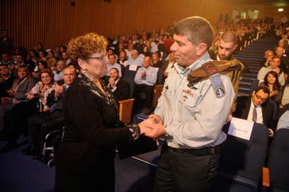 הרמטכ"ל לוחץ יד למרים פרץ. "ממך ינקתי את הכוח" (צילומים: דובר צה"ל)