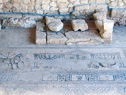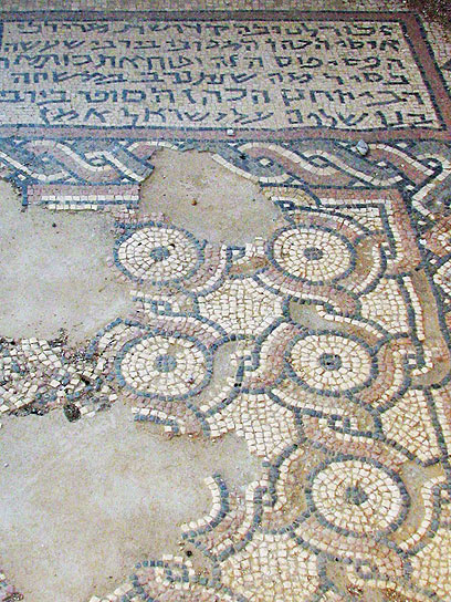 כתובת הקדשה בריצפת הפסיפס במבואת בית הכנסת
