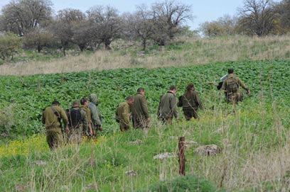 חיילים מחפשים הבוקר ברמת הגולן (צילום: אביהו שפירא)