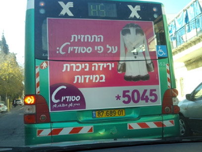 ברשת סטודיו סי, הפונה למגזר החרדי, פתרו את חוסר היכולת להשתמש בשירותי דוגמנית צעירה וחטובה כפרזנטורית ברחובות בני ברק, והשיגו חלופה בדמות בגד צר מידות, אותו הפכו לפרזנטור של הרשת במודעות הרחוב שהפיצו. פתרון זה אמנם לא הצליח לחדור את מפתן חדרי עורכי העיתונים והמודעות פורסמו רק על גבי האוטובוסים בריכוזים החרדים, אך גם זה שהמודעות לא נתלשו נחשב להישג.