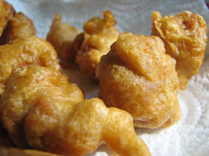 אחי ואני יכולים לאכול כמויות מגוחכות מהעוף הזה. בחגים, כשאמא שלי מכינה את זה, אנחנו עומדים משני צדיה ליד הסיר ומבלבלים אותה בתורות כדי לחטוף עוד כמה חתיכות עוף כשהיא לא שמה לב. הצורות שהבלילה מקבלת כשהיא מיטגנת מזכירות את הציורים מספריו של ד"ר סוס וזה מוסיף אלמנט משעשע לארוחה.
