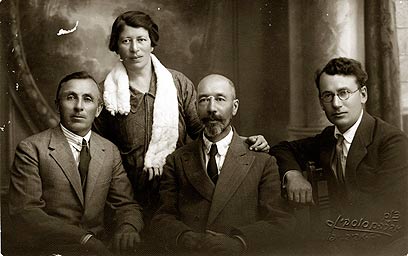 1. משפחת שמיל-שרמן: משמאל בני הזוג צבי וחנה, יעקב, אח של חנה ומימין אריה קרסיקוב. כזכור, קרסיקוב, שמיל-שרמן, לוינסון, משה נובומייסקי ופנחס רוטנברג - כולם באו מהעיר צ'יטה בסיביר והכירו אחד את השני. בלה, אשת אריה קרסיקוב, היתה בתם של חנה וצבי שמיל-שרמן. הצילום נעשה בשנת 1920 בארץ, על ידי הצלם אברהם סוסקין