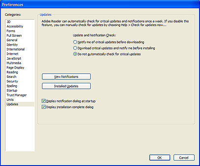 4. תחת "Update and Notification Check" סמנו את האפשרות השלישית: Do not automatically check for critical updates.