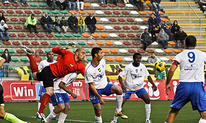 יוסי שקל מתעופף לעוד כדור גובה בטדי (צילום: נועם מושקוביץ)