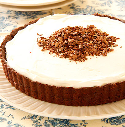 - ציפוי ועיטור: לפני ההגשה מקציפים שמנת מתוקה יחד עם אבקת סוכר לקצפת רכה. מצפים את הפאי. מחממים במיקרוגל עד לריכוך את השוקולד ובעזרת קולפן ירקות רגיל מגלפים ממנו תלתלי שוקולד. מעטרים את הפאי בשוקולד ומגישים. שומרים בקירור עד 3 ימים מיום ההכנה.