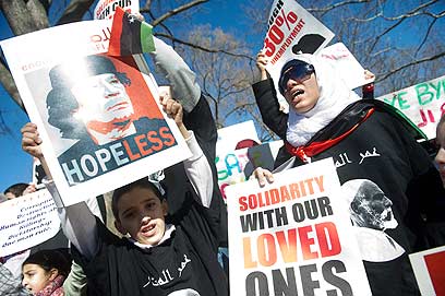 "סולידריות עם אהובינו". הפגנה בוושינגטון נגד קדאפי (צילום: AFP)