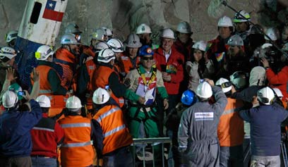 הכורים בצ'ילה אחרי שחרורם. 68 ימים מתחת לאדמה (צילום: AP)