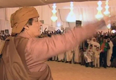 קדאפי עם תומכיו. מנסה לשדר "עסקים כרגיל" (צילום: AP)