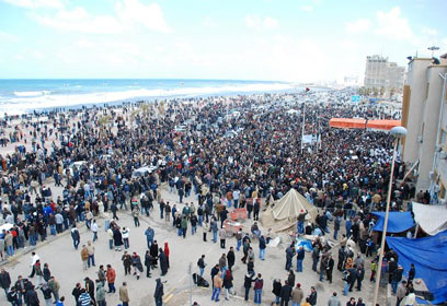 לפי אחד הדיווחים, יותר מ-1,000 מפגינים כבר נהרגו - אבל נראה שהמחאה לא דועכת אחרי הבטחות בנו של קדאפי. מתנגדי המשטר שרפו מבני ציבור ובזזו את משרדי הטלוויזיה והרדיו. כשהגיעו לכיכרות המרכזיות בעיר הם נתקלו באש חיה. עוד דווח על אנשי צבא שמרדו