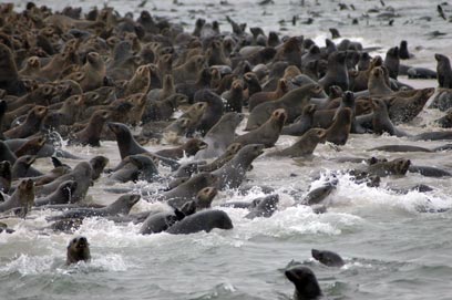 כלבי ים שורצים בחוף הים של נמיביה - המעדן של הלוויתנים