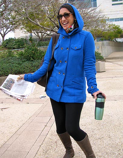צוהלת בבניין ווב. תמר בחזית בניין החוג לשפות (צילום: רפי ברבירו)