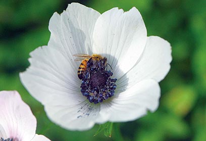 דבורה מבקרת בכלנית לבנה לצורכי איסוף אבקה