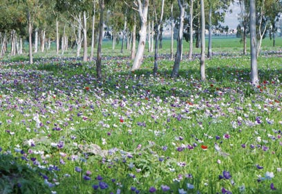 ראשונות פורחות הכלניות, אחר כך הנוריות ואת סוף העונה מסמלים הפרגים, שפורחים במסות גדולות, לחלקם עלים אדומים ואבקנים שחורים ולחלקם גם כתמים אדומים בבסיס העלה. בין לבין מצטרפים מינים נוספים ממשפחת הנוריתיים במסות קטנות יותר, כמו נורית אסיה. גם הצבעוניים - ששייכים בכלל למשפחת השושניים, מצטרפים ומתהדרים בכתמים שחורים מצוירים.