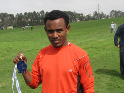 מוגס טסמה מציג בגאווה את מדליית הניצחון שלו (איגוד האתלטיקה)