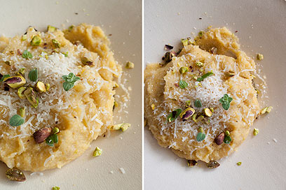 פולנטה בננה, פרמזן ופיסטוקים (צילום: נעמי אבליוביץ')