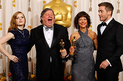 ג'ייק ג'ילנהול ואיימי אדמס מארחים את גודמן וסיימון (צילום: רויטרס)